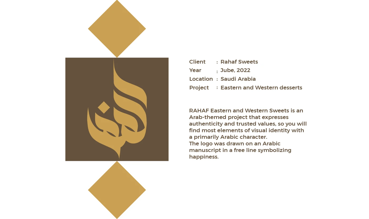 هو مشروع عربي الطابع يعبر عن الأصالة والقيم الموثوقة، لذلك ستجد معظم عناصر الهوية البصرية ذات الطابع العربي في المقام الأول.تم رسم الشعار على مخطوطة عربية في خط حر يرمز إلى السعادة.